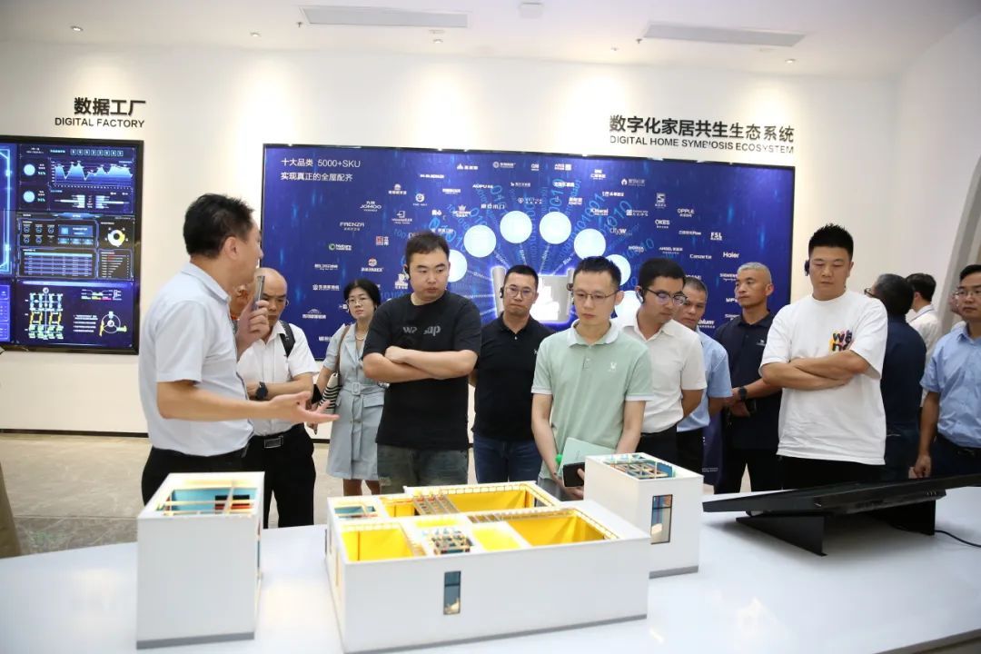 在尚品宅配圆方软件工作人员的带领下,与会代表实地参观了企业数字化展厅。通过体验AI设计系统、VR虚拟展示等创新工具,观摩工业4.0智能生产线,深入了解尚品宅配从软件研发到智能制造的全链条数字化转型成果。