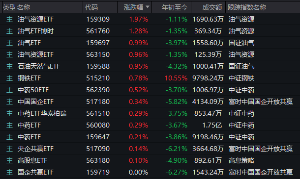 受行情影响,场内ETF中逆势领涨的非跨境型产品,基本来自油气资源、钢铁、油气、国企等主题,即同时具有深海科技和避险属性的标的。