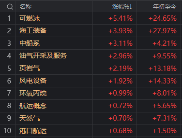 那就是深海资源(深海科技)这一题材再度大涨,颇有新主线的气质。相关板块包括可燃冰、海工装备、中船系、油气开采等。